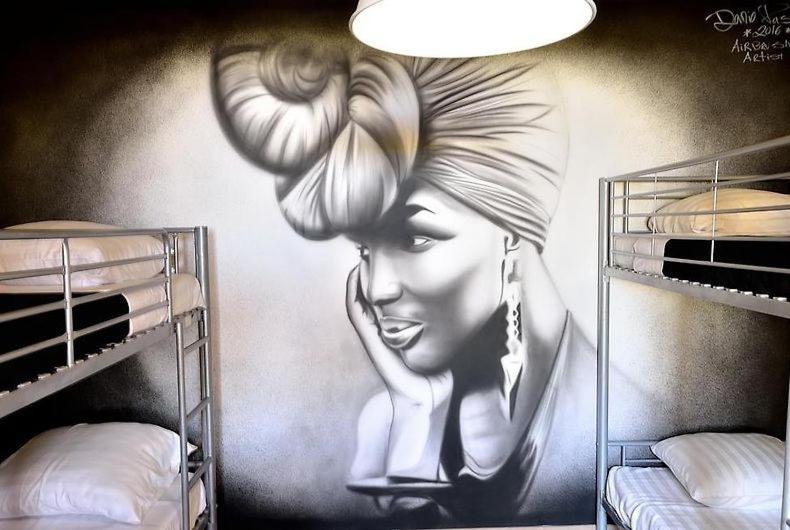 Cama num Dormitório Misto com 4 Camas. This bed in dormitory features a patio. ;