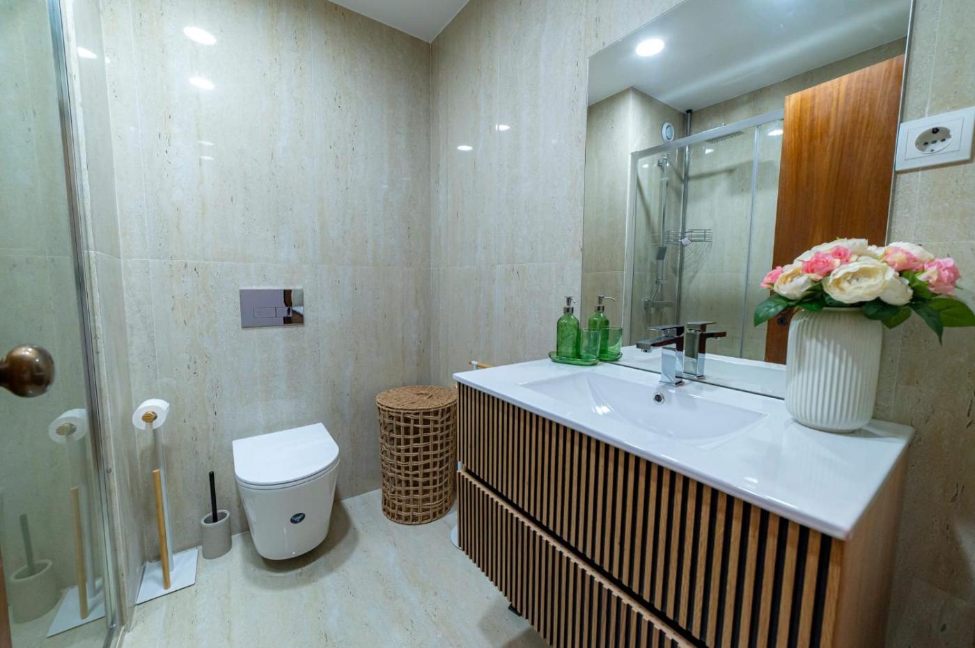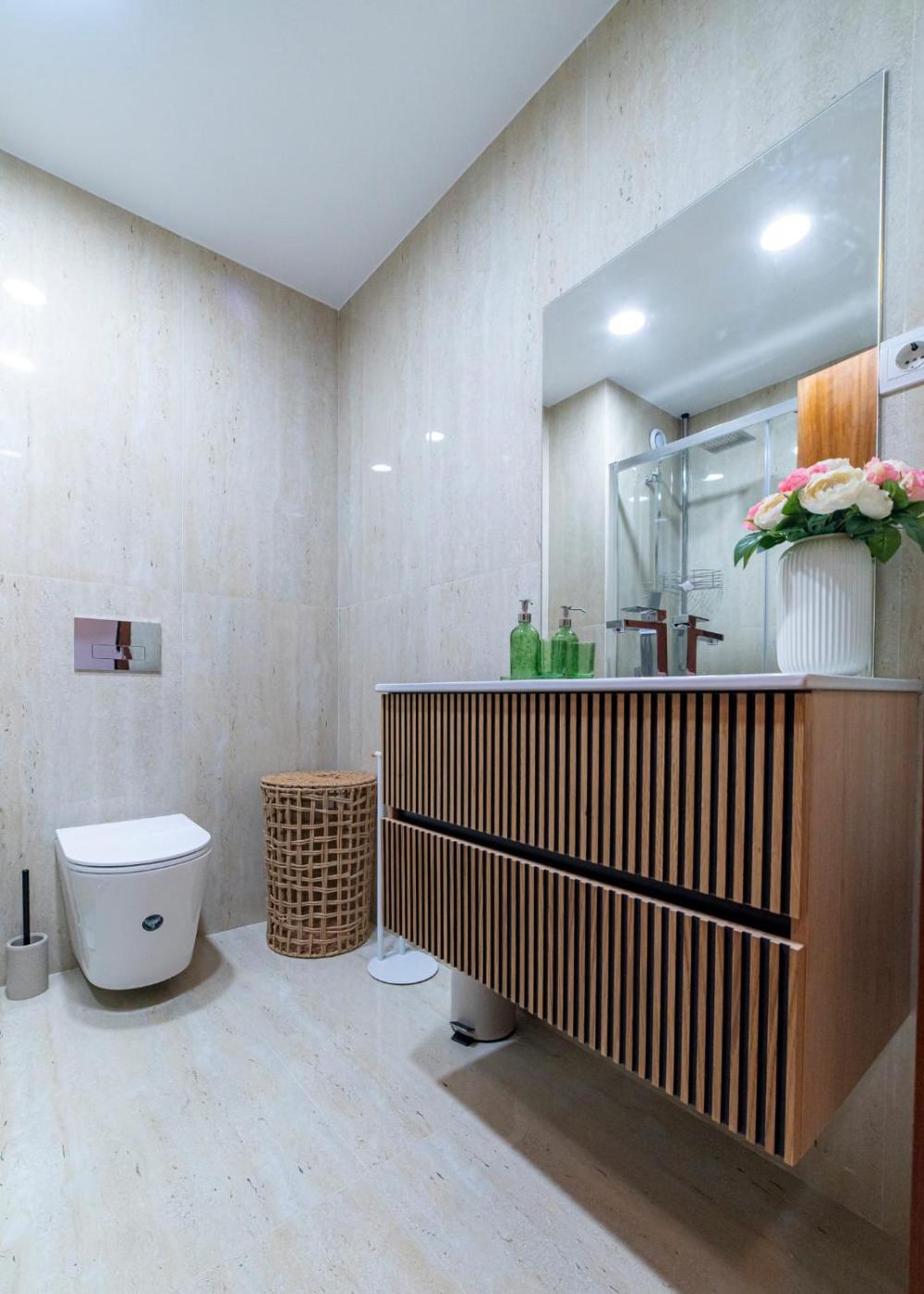 Apartamento com 1 Quarto. This apartment comes with 1 living room, 1 separate bedroom and 1 bathroom with a walk-in shower and a hairdryer. In the kitchenette, guests will find a stovetop, a refrigerator, a dishwasher and kitchenware. This apartment has soundproof walls, flat-screen TV, city views, as well as chocolate for guests. The unit has 3 beds.