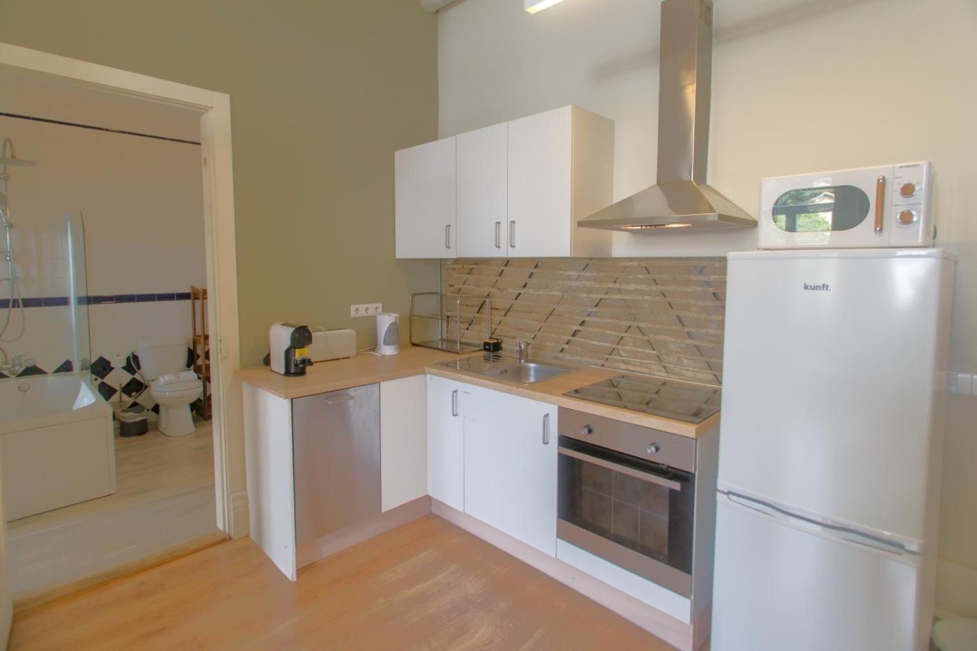 O alojamento está equipado ar condicionado e possui uma cozinha, uma televisão de ecrã plano e uma casa de banho privativa com banheira ou chuveiro, produtos de higiene pessoal gratuitos e um secador de cabelo. Um frigorífico, um micro-ondas e placa de fogão também estão disponíveis, assim como uma máquina de café e uma chaleira.